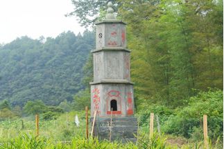 這座完整的“惜字爐”位于易家田村巫水河西岸田垅邊,座北朝南,塔下河水潺潺,古木參天,景色宜人。全爐六角六面形,三層式格局,分為底層、亭座、亭身、云蓋、亭頂五部分。其中基礎(chǔ)層高105cm,主體第一層至第三層高度分別為120cm、105cm、88cm,頂層高70cm,連同3個(gè)云蓋在內(nèi)總高度達(dá)6米?!跋ё譅t”呈六面形,基礎(chǔ)層為正方形,四面各寬140cm;主體第一層至第三層每面寬度分別為70cm、60cm、50cm。頂層為3個(gè)寶葫蘆。