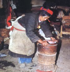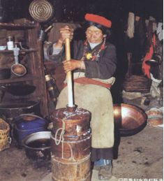 藏族生活在號稱“地球第三極”的青藏高原上,高寒的高原氣候,嚴(yán)酷的生存環(huán)境,造就了藏民族勇敢剛毅的民族個性,也形成了藏民族獨具高原特色的飲食文化,藏鄉(xiāng)的酥油茶便是其中一朵奇葩。酥油茶是藏鄉(xiāng)群眾日常生活所必需的一種飲料,也是藏族人民待客、禮儀、祭祀等活動不可或缺的用品,極具民族特色和文化內(nèi)涵。剛進藏的漢族干部,要適應(yīng)高原環(huán)境,首先要過生活關(guān),其中重要的一條就是能不能喝酥油茶。顧名思義,酥油茶由酥油、茶和食鹽三種原料做成。