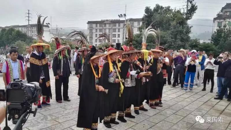 祭祖大典隆重、肅敬、莊嚴(yán)。儀式: 1、吹奏長(zhǎng)號(hào)樂、鳴禮炮,敬告天地東西南北中五方神抵;2、奏樂(長(zhǎng)號(hào)、噴吶),請(qǐng)彝族畢摩上香;3、奏樂(長(zhǎng)號(hào)、噴種),敬貢三牲,果品,圣水,豬頭,雞;4、請(qǐng)彝族畢摩撒五谷,念誦《散五谷詞》;5、彝族畢摩向祖先阿普駕幕行跪拜禮,恭誦《祭祖祈福經(jīng)》;6、請(qǐng)各地同胞代表恭誦《祭文》;7、請(qǐng)各位領(lǐng)導(dǎo)、各位來賓、各位朋友全體起立!向彝族祖先阿普篤幕及六祖行叩首禮:一鞠躬!再鞠躬!三鞠躬!禮畢!8、奏樂(長(zhǎng)號(hào)、噴吶),恭請(qǐng)貴賓敬獻(xiàn)高香。