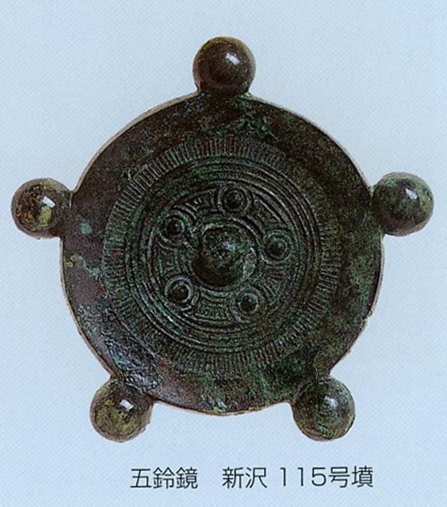 銅鏡在古墳時(shí)代被視為珍貴而神奇的器物一方面從中國(guó)輸入,另一方面也有就地制造。奈良縣出土的大型仿制連弧紋鏡和五鈴鏡(圖十四),就是日本特有的銅鏡類型。