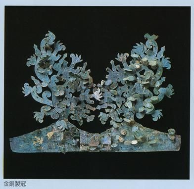 藤之木古墳出土的鎏金冠飾,在我國(guó)遼寧北燕墓地和高句麗墓均有類似文物發(fā)現(xiàn),是鮮卑等北方少數(shù)民族貴族流行的冠飾,稱為鳥型冠飾。