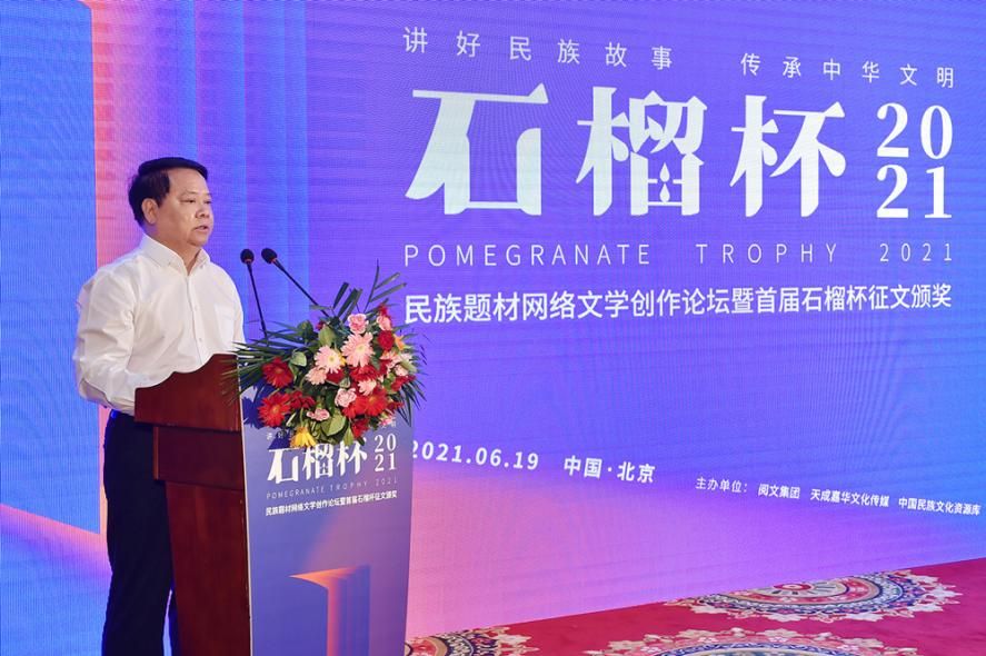 6月19日,民族題材網(wǎng)絡(luò)文學(xué)創(chuàng)作論壇暨首屆石榴杯征文大賽頒獎(jiǎng)典禮在京舉行。作為國(guó)家民委主辦的“中華民族全家?!毕盗谢顒?dòng)之一,首屆石榴杯征文大賽得到了國(guó)家民委文化宣傳司和中國(guó)少數(shù)民族文化藝術(shù)促進(jìn)會(huì)的指導(dǎo)與支持,由閱文集團(tuán)聯(lián)合天成嘉華文化傳媒、中國(guó)民族文化資源庫(kù)、中國(guó)民族文化資源網(wǎng)共同舉辦。本屆大賽以“講好民族故事 ,傳承中華文明”為主題,涌現(xiàn)出眾多弘揚(yáng)民族精神、表達(dá)文化自信、傳播正能量的作品。經(jīng)過專家推薦及嚴(yán)格評(píng)審,《草原有座蒙古包》、《走西口之天山行》、《彩云微光》等三部作品獲“最具民族風(fēng)采獎(jiǎng)”,《神藏》、《歡想世界》、《爛柯棋緣》、《時(shí)光和你都很美》、《恰似寒光遇驕陽(yáng)》、《黎明醫(yī)生》、《暖君》、《驚雷》、《大訟師》、《消防英雄》等十部作品獲“優(yōu)秀作品獎(jiǎng)”。所有獲獎(jiǎng)作品都將收錄入中國(guó)民族文化資源庫(kù)。中國(guó)作家協(xié)會(huì)副主席、書記處書記吉狄馬加表示,本屆石榴杯大賽是在黨和國(guó)家長(zhǎng)期以來(lái)堅(jiān)持的對(duì)民族文化、少數(shù)民族作家創(chuàng)作和民族題材創(chuàng)作的大力扶持下,依托網(wǎng)絡(luò)文學(xué)平臺(tái),將文學(xué)作品與影視作品改編、游戲、動(dòng)漫產(chǎn)品制作結(jié)合起來(lái),探索的一條發(fā)展民族文化的新路,具有開創(chuàng)意義。