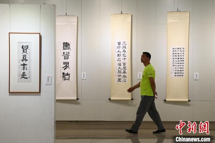圖為觀眾參觀書(shū)法展?!『闻罾?攝