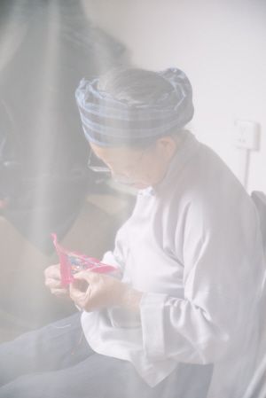 有時(shí)發(fā)現(xiàn)我在拍照,她們會(huì)害羞,用不太標(biāo)準(zhǔn)的普通話說自己老了,拍照不好看了。我就趁機(jī)多問一句:“為什么現(xiàn)在這樣的衣服年輕人過節(jié)才穿,你們每天都要穿呀?”“穿慣了,不能脫了。”她們笑笑回答。這種傳統(tǒng)款式,裁縫們稱為“父母裝”,很現(xiàn)代的說法。