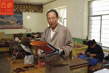 赤列塔青成年后,適逢西藏實(shí)行民主改革,拉薩市城北區(qū)的夏薩蘇和沖賽康各成立了一家“鞋業(yè)互助社”,八位鞋匠師傅每人掏50元錢入股,赤列塔青父子就這樣成了互助社的第一批成員。“后來的事情變得很復(fù)雜!”赤列塔青說。從企業(yè)名稱和辦公地點(diǎn)的多次變更,可以了解到搞民族手工業(yè)不是一件容易的事情。西藏平叛后這個(gè)鞋業(yè)互助社改名勝利合作社,后來又叫前進(jìn)鞋帽合作社,再后來改叫城關(guān)區(qū)鞋一廠,現(xiàn)在的名字是彩泉民族手工業(yè)公司。原來的廠址在老沖賽康附近,后來搬到木鹿寺后面,現(xiàn)在駐進(jìn)城北的佳村曲美,廠名變了,地址變了,不變的是人。赤列塔青認(rèn)為,只要人在,企業(yè)就有希望。