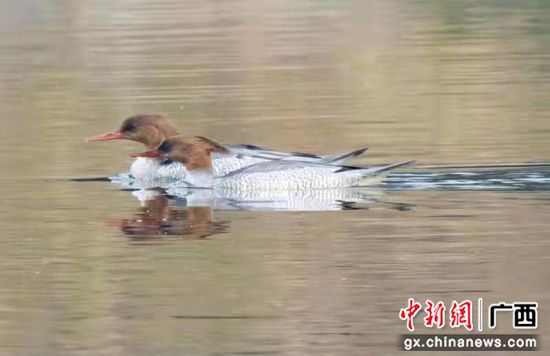 廣西荔浦市荔江流域首次發(fā)現(xiàn)國家一級保護(hù)動物:中華秋沙鴨。張德林 攝