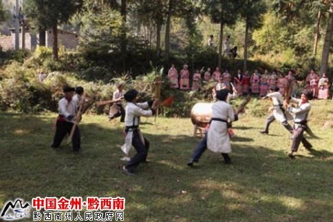 據(jù)普安縣志記載,“蒙灑”苗人是明末遷至普安,其“惹捱德亙”(蘆笙棒舞)起源于何時(shí),均無(wú)文字可考,但從其傳說(shuō)、表演形態(tài)和伴奏音樂看,苗族蘆笙棒舞是我國(guó)古代歌、舞、樂一體的藝術(shù)形態(tài)在苗族族群中的留存。