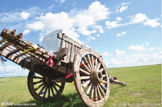 蒙古族牧民常用的一種木制大輪車。多用樺木或柳木制做。車輪高約1米,車身重約百斤,可載重300—450公斤,日行約30余公里。每車用一頭牛來拉,一人可駕馭數(shù)輛,適于在草原、沙漠、雪地等行走。亦可將數(shù)十輛勒勒車首尾相接形成近百米長的車隊,十分壯觀,也形成了草原上特有的風情?,F(xiàn)在已多被膠皮鐵輪的軸承車所替代。另外還有一種“蒙古轎車”,是一種在勒勒車基礎上經(jīng)過改造專門乘人的車。其與勒勒車不同之處在于車體上有用柳條子彎曲后扎成的車棚,棚子的外面用毛氈包圍,形成一個既擋陽光,又擋風雨,防曬御寒的帳篷。