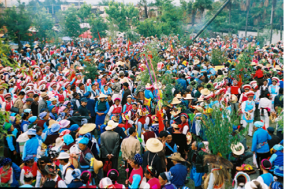“繞三靈”活動(dòng)的特點(diǎn),除了向本主神靈祈求風(fēng)調(diào)雨順的內(nèi)容之外,主要在于其歌舞活動(dòng)所表現(xiàn)的男女情愛無所顧忌,放達(dá)不拘。每個(gè)歌舞隊(duì)列領(lǐng)頭者均為男女巫二人,他們以一手共執(zhí)一株齊人高的樹枝,另一手分別揮舞牦牛尾和花手巾,邊舞邊唱,引領(lǐng)著隊(duì)伍緩緩前行。樹枝上掛著紅綢系著的葫蘆,據(jù)說葫蘆象征母腹,紅綢象征陰血。他們口唱的調(diào)子稱“活恩枯”直譯為“花柳曲”,一唱一和,幽默風(fēng)趣。其后的歌舞隊(duì)列,唱的也都是充滿艷情的調(diào)子,跳的是霸王鞭和八角鼓舞,舞姿多有男女背靠背、心合心、腳勾腳等形式,無拘無束地表達(dá)著熾熱的情感。
