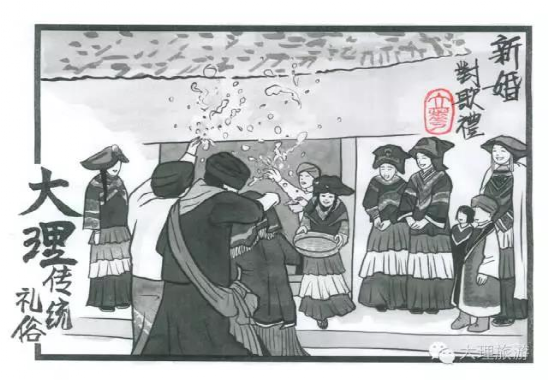 進(jìn)新郎家時(shí),新郎和新娘會(huì)對(duì)歌,新郎問(wèn)新娘答,男女雙方一問(wèn)一答,對(duì)歌后,方能入門。