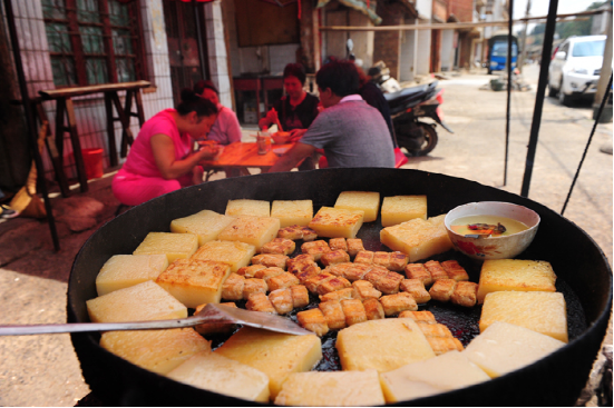 “平壩風(fēng)味食品獨(dú)特,追求原汁原味,這在烤豌豆粉、臭豆腐、平壩凹鍋中均有體現(xiàn),或嫩、或軟、或脆,味道獨(dú)特,能給人留下深刻的印象?!边@是云南文山市平壩鎮(zhèn)黨委書記雷濤對(duì)我們到來(lái)說(shuō)的第一句話。