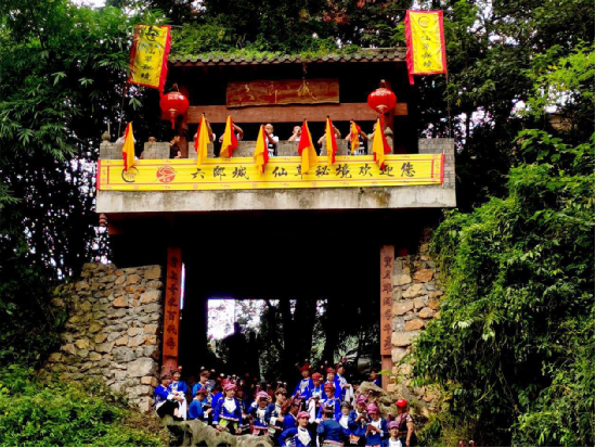 六郎城村屬于喀斯特地貌,四面環(huán)山,山上有整片古木參天的風(fēng)水樹林,山峰外側(cè)懸崖峭壁,山峰內(nèi)部平緩;左邊是陡壁,縱有萬千來犯之?dāng)骋部蓱{借地勢險要守住,右邊是六郎城,只要在烽火臺上點燃狼煙,三五分鐘即可就位嚴(yán)陣以待?,F(xiàn)殘存有青石壘砌石墻、戰(zhàn)壕、瞭望臺、石碉堡、烽火臺等古遺址,彰顯獨特的“沙場”韻味,濃烈的英雄氣息和鮮明的民族特點與神秘濃郁的壯族文化習(xí)俗相交融,形成屬于六郎城自身厚重的民間文化。該村自古以來具有樂觀尚上的精神,男女老少擅長歌舞,壯族風(fēng)俗禮儀濃厚,每年六月初三至初九,都要舉辦別具一格的“六郎節(jié)”來祭祀楊六郎,祈求保佑平安、健康、豐收;紅白喜事吹拉彈唱、逢年過節(jié)耍龍、舞獅,跳弄婭歪、銅鼓舞、手巾舞等,其歷史悠久、原始綠色生態(tài)和壯族傳統(tǒng)文化保存得相當(dāng)?shù)耐旰谩?018年,六郎城獲批省級文明村;同年12月,被評為文山州第一批“民族團結(jié)進(jìn)步示范村”;2019年底被評為“云南省少數(shù)民族特色村寨”;2020年被評為云南第一批省級民族團結(jié)進(jìn)步示范村。