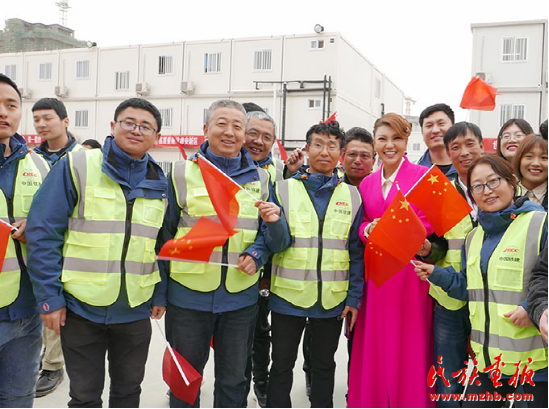 烏蘭圖雅在廣西河池市環(huán)江縣演出后與各族群眾合影留念。