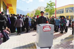 在社區(qū)的樹新風積分超市前,居民們排起整整齊齊的長隊,不由得讓人好奇。