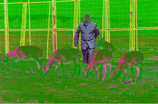 在可可西里國家級自然保護(hù)區(qū)索南達(dá)杰保護(hù)站,站長趙新錄與藏羚羊在一起(9月28日攝)。新華社記者 李占軼 攝
