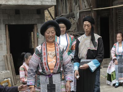 貴州貴陽苗族婚禮上新郎新娘裝...