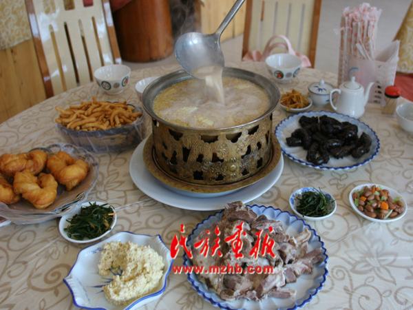 蒙古族傳統(tǒng)食品除了紅食(肉食)就是白食(奶食)。以蒙古五畜(牛、馬、駱駝、羊、山羊)的乳汁為原料制成的食品稱為奶食,蒙古語“查干伊得”,意為白色的食品。白食承載著豐厚的文化內(nèi)涵,它以其豐富的營養(yǎng)、細(xì)膩的口感、純潔的顏色等特性被牧民視為珍品。