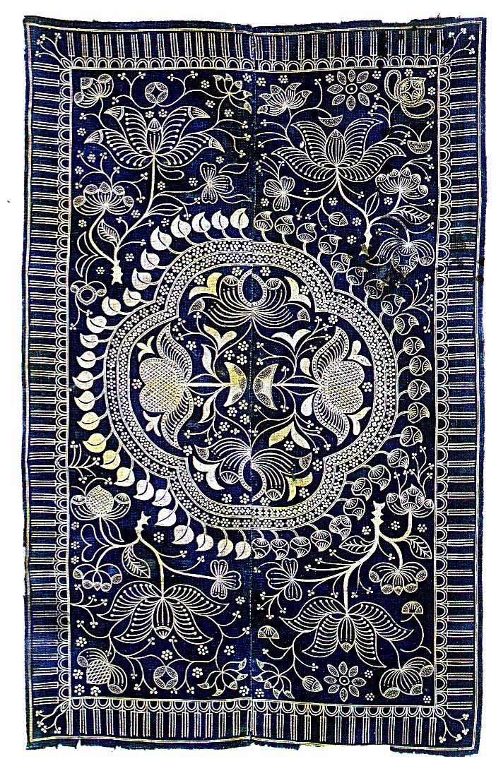 苗族蠟染歷史悠久,很多地方都流行有《蠟染歌》(古歌),敘述蠟染的起源。早在秦漢時代,苗族的先民就已經掌握了蠟染技術,據《貴州通志》記載:“用蠟繪花于布而染之,既去蠟,則花紋如繪”,這種蠟染布曾被稱為“闌干斑布”。宋代五溪地區(qū)的“點蠟幔”(蠟染)已很盛行。明、清時代,黔中一帶苗族也多用蠟染衣料。民國年間,蠟染盛行于湘西、貴州、云南、川南的大部分苗族中,而以貴州的丹寨、安順、郎岱(今六枝)、普定、惠水等地技藝最高。大多數地區(qū)都將蠟染成品作衣飾,湘西地區(qū)則用作床單、枕巾等。