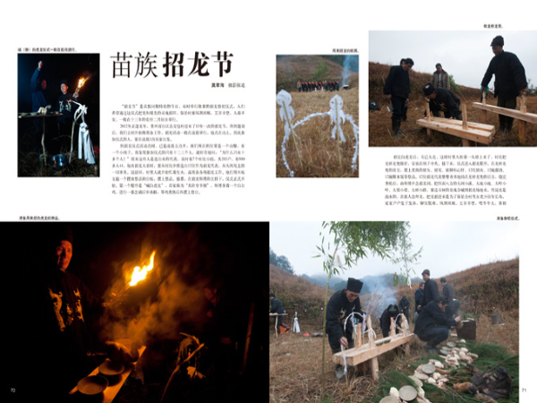 “招龍節(jié)”是苗族同胞特有的節(jié)日,屆時舉行隆重的招龍祭祀儀式,人們希望通過這儀式把龍和祖先的靈魂招回,保佑村寨風(fēng)調(diào)雨順,五谷豐登,人畜平安。一般在十三年的農(nóng)歷二月辰日舉行。