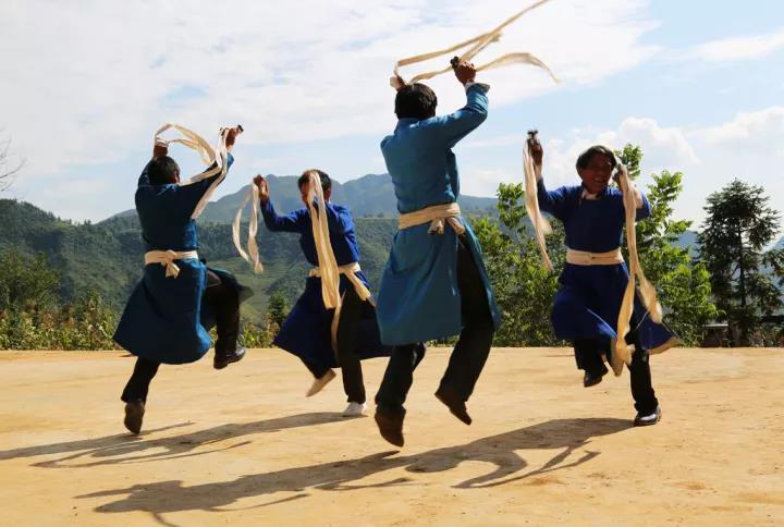 “鈴鐺舞”主要流傳在烏蒙山區(qū)的彝族聚居區(qū)。彝語稱“懇合唄”。“懇合”,指祭祀禮儀中唱經(jīng)文的歌,“唄”即跳的意思,又稱“跳腳”、“抄子舞”。合起來就是通過舞蹈表演的形式加上歌師的訴唱來祭奠死者的意思,是彝族先民在祭祀教化活動時按倫理輩分和長次舉行高歌創(chuàng)業(yè)公德的騎馬戰(zhàn)狀舞蹈。