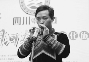現(xiàn)年41歲的阿西日哈,是四川馬邊彝族自治縣民建鎮(zhèn)燈桿堡村的村民。這位多才多藝的彝族漢子不僅會吹奏木葉、草葉,而且精通月琴、馬布,還會吹奏葫蘆絲和笛子,可以稱得上是一位全能樂器手。令人驚訝的是,這些樂器幾乎都是阿西日哈自學(xué)的。