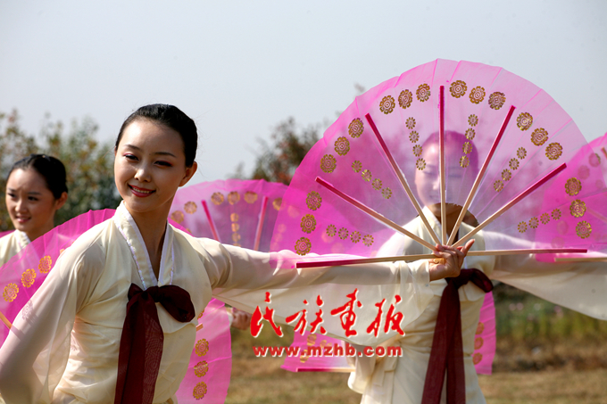 十月的延邊碧空如洗,大地歡歌;十月的山村層林盡染,稻谷飄香。這是農(nóng)民們最為向往的季節(jié),耀眼的陽(yáng)光給剛剛收獲過(guò)的土地鑲上了一層迷人的金邊,累累碩果被婦女們輕快地端上了餐桌。在寬闊的體育場(chǎng)上,彩球升騰、人聲鼎沸,一場(chǎng)盛大的慶?;顒?dòng)—農(nóng)樂(lè)舞表演即將拉開(kāi)序幕……