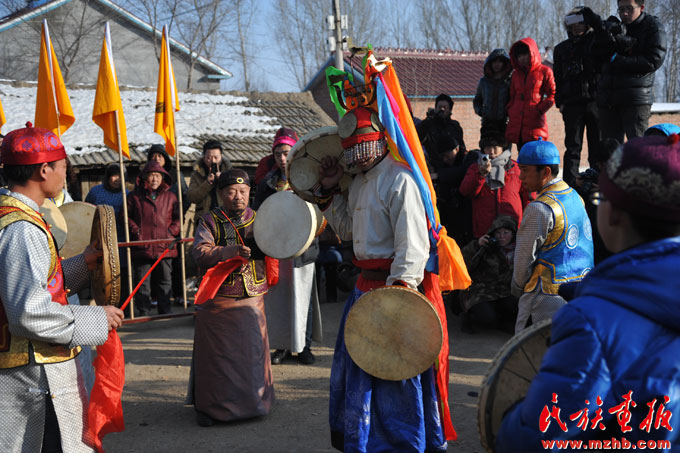 隆冬,薩滿(mǎn)傳承儀式在小院舉行 張學(xué)慧攝 引自民族畫(huà)報(bào)