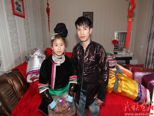 這次結(jié)婚的共有15對新人(多時有二三十對),均來自本寨的青年男女。婚禮從大年二十六開始,共進(jìn)行三天,在三天的婚禮中新郎新娘家均有婚宴,尤以第一天中午的規(guī)模最大也最為隆重。