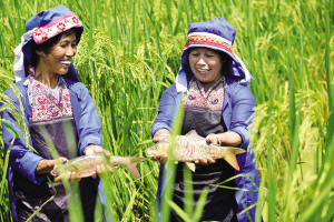 稻田養(yǎng)魚是當(dāng)?shù)囟编l(xiāng)群眾的傳統(tǒng)習(xí)俗,燒魚是侗族的一種傳統(tǒng)美食?!盁~節(jié)”是當(dāng)?shù)囟弊宓囊豁梻鹘y(tǒng)民俗活動。在初秋時節(jié),當(dāng)?shù)囟弊迦罕婇_田放水,捉魚,全寨男女老少,野外生起篝火烤魚,用燒魚、米酒等祭祀魚神,祈禱魚糧豐收。圖為該寨的侗族群眾在稻田捕魚。
