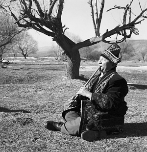 說到斯布孜額的來歷,應(yīng)該追溯到遠(yuǎn)古游牧?xí)r期。草原上隨處可見的艾蒿管莖、樺木等做成了3孔、4孔、5孔,甚至7孔的吹鳴樂器。一根管子能發(fā)出4至5個(gè)音,這是一個(gè)了不起的進(jìn)步。因?yàn)樽屢桓茏影l(fā)出有秩序的音高,會(huì)涉及到以什么間距來開孔的問題。隨著時(shí)間的推移,在中原文化和西域乃至歐亞大草原文化的交流中,青銅器、鐵器隨之而來,游牧民族開始用銅管、鐵管來制造吹鳴樂器。但此前定型的斯布孜額卻代代薪火相傳,直到今天。成書于公元11世紀(jì)的古籍《突厥語大辭典》上載有“斯布孜額”一條,書上解釋為“一種笛子”。