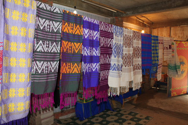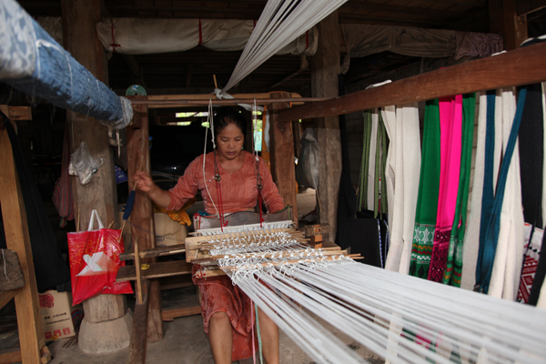 云南傣錦歷史悠久,風(fēng)格古樸,以其織工精巧、圖案別致、色調(diào)鮮艷、堅(jiān)牢耐用和富有民族特色而著稱。它主要流傳和盛行于云南省南部的西雙版納傣族自治州,西南部的德宏傣族景頗族自治州、耿馬傣族佤族自治縣、景谷傣族彝族自治縣,以及孟連傣族拉祜族佤族自治縣等傣族較聚居的區(qū)域。云南傣錦是一種以絲線、毛線、棉線、麻線、晴綸線、金絲線等材料為原料,采用傣族傳統(tǒng)的木架織機(jī)手工操作,經(jīng)提花、織造等工藝形式制作成的長(zhǎng)條形織錦物,是云南的傣族人民從事宗教活動(dòng)和美化生活必不可少的物品。傣錦長(zhǎng)短不一,幅寬一般為20-60厘米不等。因其花紋絢麗多彩、形象生動(dòng)、變化多端 、呈立體形,在云南少數(shù)民族織錦中獨(dú)樹(shù)一幟,享有很高的聲譽(yù)。傳統(tǒng)的云南傣錦按構(gòu)成形式和材料主要有兩種即西雙版納傣錦和德宏傣錦。西雙版納傣錦以白色為底,用紅色和黑色緯線織成花紋,傣錦線條寬窄有致,形體夸張簡(jiǎn)練,圖案較為規(guī)律化,具有粗獷的質(zhì)樸感和濃厚的裝飾性;而德宏傣錦則色調(diào)較為濃重,常用黑、紅、翠綠、黃、藍(lán)等濃艷色彩的絲線和棉線摻用金絲錦線織制,圖案以菱形、方形、六角形及回形紋等幾何形為主,織錦鮮艷奪目,結(jié)構(gòu)嚴(yán)謹(jǐn),紋飾古雅,尤顯華麗。