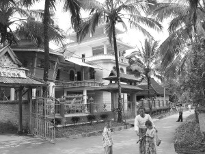 覺(jué)悟的菩提樹(shù)下,是橙色的佛寺,小和尚攤開(kāi)構(gòu)紙抄寫(xiě)的經(jīng)書(shū),輕輕誦讀,構(gòu)樹(shù)婆娑,掛滿鳥(niǎo)語(yǔ)。
