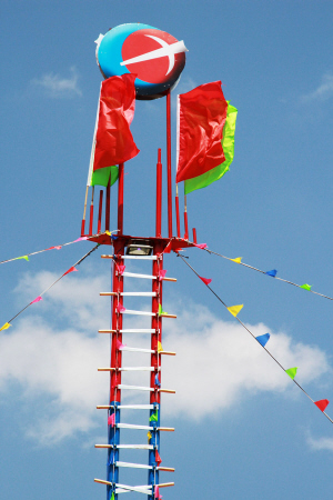 2011年,緬甸傈僳學(xué)會(huì)在密支那舉辦了第一屆世界傈僳闊時(shí)節(jié),第一次將十幾米高的弩弓木雕作為會(huì)徽。該木雕高高聳立于密支那郊區(qū)闊時(shí)節(jié)會(huì)場,還有印有傈僳族徽的紅旗插滿會(huì)場四周,高高飄揚(yáng),與巨型木雕相互輝映,構(gòu)成了一個(gè)以弩弓木雕為核心,族徽紅旗環(huán)繞的闊時(shí)節(jié)會(huì)場空間。其內(nèi)其外,傈僳族空間與非傈僳族空間區(qū)隔明顯。