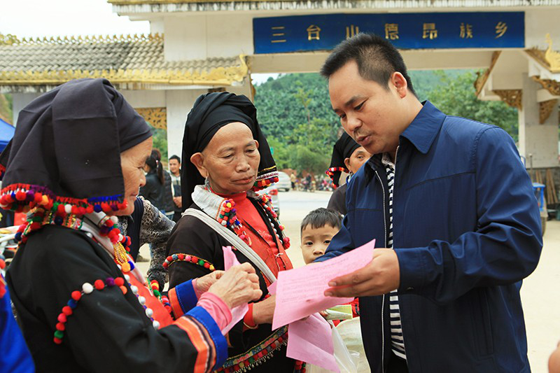 三臺山徳昂族鄉(xiāng)鄉(xiāng)長楊愛明和德昂族群眾參加農(nóng)業(yè)科技推廣活動(dòng)