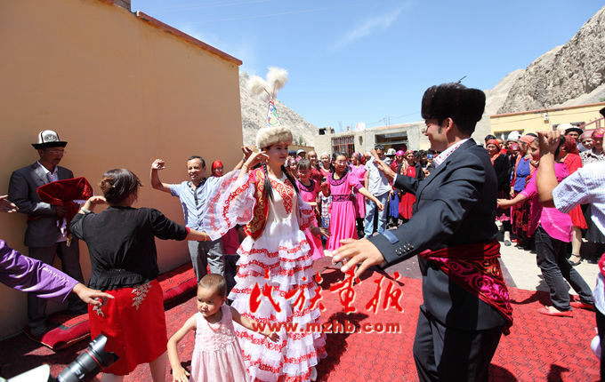 柯爾克孜族婚禮上拋灑喜糖(摘自《民族畫報》)