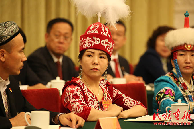 十九大代表、新疆維吾爾自治區(qū)討論會上古麗孜娜提?吐坎發(fā)言(滕俊 攝影)
