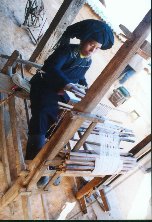 (2)紡織。布朗族婦女善于紡織,多在閑暇時(shí)間進(jìn)行。紡織原料有棉花、苧麻和葛線麻等數(shù)種,以紡織棉布為主。這些布用來縫制上衣、筒裙、背帶、布袋、裹腳布等。紡織品種有斜紋布、平布和彩錦。布的質(zhì)地厚實(shí)耐穿,深受本族人喜愛。有的地區(qū),人們多半使用水平織機(jī),紡織技術(shù)更進(jìn)了一步。近十年來,由于價(jià)廉物美、品種齊全的化纖紡織品大量銷售,傳統(tǒng)的紡織技術(shù)受到了沖擊,一些布朗族婦女已經(jīng)不紡紗織布。
