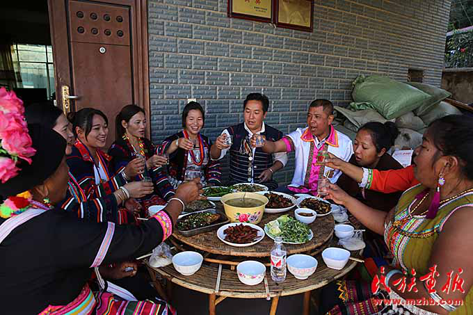 布朗族的節(jié)日,同村的哈尼族來賀喜
