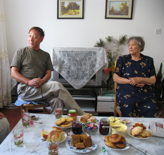 到俄羅斯族人家中作客或辦事,進(jìn)屋要敲門,得到允許才能入內(nèi),進(jìn)屋要脫帽,坐在主人讓給的位子上,不能坐床,坐床認(rèn)為是很不禮貌的行為。來(lái)客不得隨便吸煙,吸煙須經(jīng)主人同意。俄羅斯人最隆重的傳統(tǒng)禮節(jié)是用面包和鹽迎接客人,象征著友誼和善意。來(lái)客須用刀子切下一塊面包沾少許鹽吃下后方可進(jìn)屋。這種禮節(jié)從前只用于迎接貴賓和新娘,現(xiàn)在也用于一般社交場(chǎng)合。