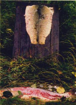 圖三-圖五選中剝皮的魚(yú) 剝魚(yú)皮 曬魚(yú)皮