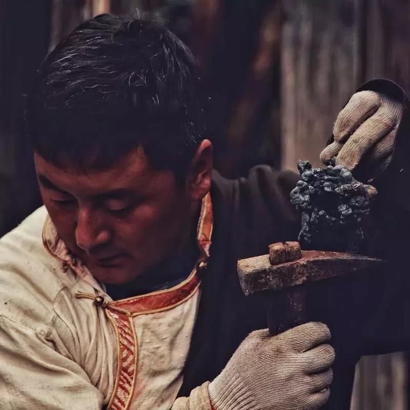 西洛帶著幾個徒弟去經(jīng)幡下煨桑祈福,之后開始進(jìn)山找礦,易貢藏刀的獨特,全因為當(dāng)?shù)氐囊蛔F山,這座山上的也是易貢藏刀唯一的原材料。爬山涉水,他們帶回鐵礦,經(jīng)過繁復(fù)的流程和制作過程中,藏刀制作完畢,西洛最后刻上了鋼印,然后親自將刀交到老人手上。新刀叫洛桑頓珠,這也是老人的名字,用自己的名字來命名新刀,也是老人希望自己能一直陪在這把孤刀身邊。