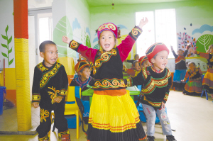 涼山州雷波縣汶水鎮(zhèn)馬處哈三峽新村幼教點,孩子們在快樂地玩耍。冷文浩攝