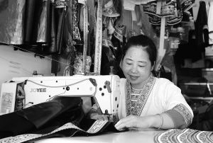 廣西柳州市融水苗族自治縣苗家小鎮(zhèn)是一個(gè)易地扶貧搬遷社區(qū),自2017年群眾陸續(xù)入住以來(lái),當(dāng)?shù)卣诩訌?qiáng)和完善基本公共服務(wù)設(shè)施的同時(shí),通過(guò)創(chuàng)辦扶貧車間、成立小微市場(chǎng)和鼓勵(lì)自主創(chuàng)業(yè)等方式,多措并舉保障和提升搬遷群眾的就業(yè)質(zhì)量,目前已實(shí)現(xiàn)“一戶一人就業(yè)”共1586戶3824人,占總戶數(shù)的98%。搬出大山的群眾迎來(lái)了新的生活,開(kāi)啟了新人生。蒙瓊丹是融水縣桿洞鄉(xiāng)桿洞村搬遷戶,她在照顧兩個(gè)小孩讀書(shū)的同時(shí)開(kāi)了家苗衣店,月收入2000元。圖為8月30日,蒙瓊丹在制作苗族服裝。 龍濤攝影報(bào)道