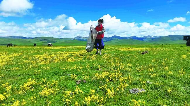 自那以后,才培和更求拉毛大手牽小手,從這個(gè)牧帳撿到那個(gè)牧帳,從日出撿到日落……更求拉毛已記不清到底撿了多少塑料袋、廢鐵皮、飲料瓶。但在她看來,嘉塘的遠(yuǎn)山和近水,終有一天會(huì)如藍(lán)天白云般凈澈,這也成了她和父親的共同夢(mèng)想。