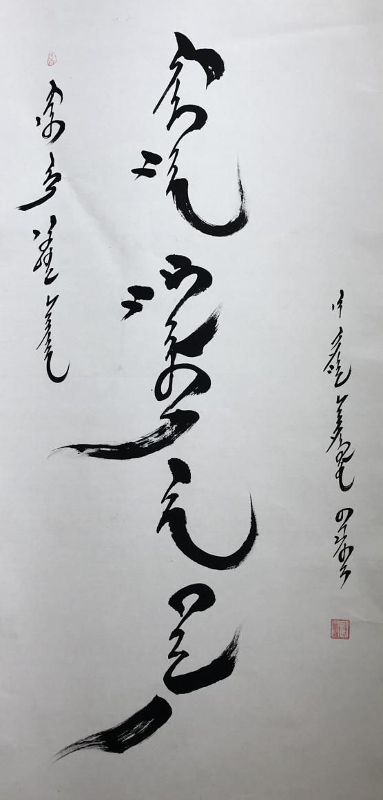 蘇永布文字。1686年由喀爾喀高僧,一世咱那巴咱爾創(chuàng)制。這種文字源自梵文蘭札體字母,主要用于宗教和裝飾目的。由于字體繁難,并未在民間流行。