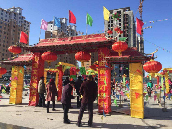 燈游會(huì)多在元宵節(jié)舉辦。舉辦燈游會(huì)的方法是:選擇約6O平方丈大的平坦廣場,栽置360根高約1.5米的木桿。木桿縱橫有序,形成九個(gè)方形燈陣,曰“九曲黃河陣”。每根本桿頂上安一  盞彩燈。燈陣中央栽一根10多米高的木桿,頂端置一盞最大最高的明燈,曰“老桿兒”。燈陣設(shè)有入口和出口兩個(gè)大門,九個(gè)燈陣的出口處各留一個(gè)小門。游“九曲黃河陣”者從入口進(jìn)入,沿著布滿疑點(diǎn)的彎彎曲曲路線走下去,可游遍整個(gè)燈游會(huì)場。舊時(shí)傳說:人們游至“老桿兒”時(shí),如擁抱“老燈桿,可消災(zāi)免禍,增福添壽,吉祥如意。游者如果不知“九曲黃河陣”中的奧妙,轉(zhuǎn)來復(fù)去,象陷入迷魂陣一般無法走出,故驅(qū)使人們好奇而入,迷陣陷身,觀者大笑,趣味橫生。