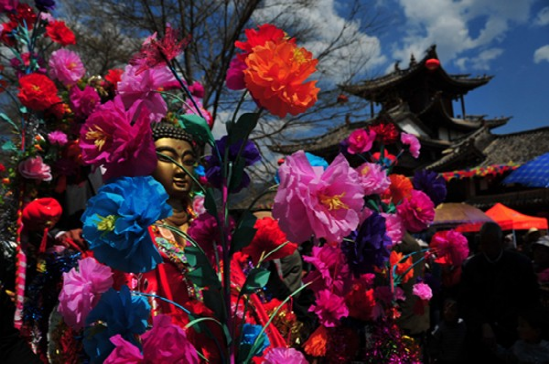 “二月八”是大理州劍川縣有著上千年歷史的白族傳統(tǒng)重要節(jié)慶之一,時間為每年農歷二月初八日。其形成的主要因素是受佛教密宗文化的影響。相傳,農歷二月初八日,釋迦牟尼生前為毗羅衛(wèi)國凈飯王的太子出皇宮到民間查看,看到人世間生、老、病、死等種種疾苦,遂立志創(chuàng)立佛教,普渡眾生。便于當晚舍棄皇宮生活和太子的地位,踰城出家修行,尋求解除百姓種種苦難的道路,最后創(chuàng)立了佛教。明、清兩代至今,每年的二月八,廣大佛教信徒聚集在劍川縣城金華鎮(zhèn)和沙溪鎮(zhèn)寺登街,舉行盛大的紀念活動,抬著釋迦牟尼的太子雕像,一路鐘鼓齊鳴,焚香誦經,浩浩蕩蕩,漫游“四門”,常常聚集萬人,一般村嫗老婦也喜歡牽兒帶孫參加游行,并把自家的孩子裝扮成“太子”,以沾“佛”氣。