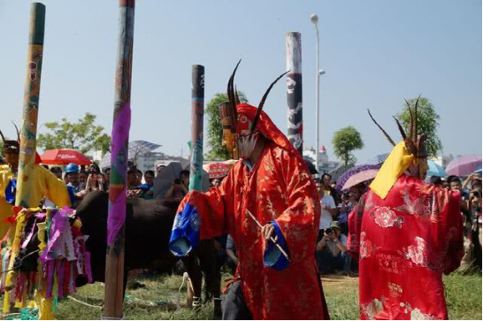 過(guò)節(jié)前一天,要“椎殺”一頭公牛,用牛頭、牛尾、牛腳、牛內(nèi)臟祭龍。祭時(shí)有法師喃經(jīng)、跳神。牛肉則分給各家各戶或拿到市上出賣,收入作為節(jié)日費(fèi)用。祭龍后二三天,各戶自拜祖先、三界仙、灶王、地主娘娘等,也是求神靈保佑五谷豐登。又用糯飯、粉蒸肉喂牛,以酬謝它耕作的辛勞,并給牛放假一天,讓它好好休息。嫁出去的女兒則帶上子女和禮品回娘家過(guò)節(jié),親戚朋友也常常登門賀節(jié),青年男女則盛裝聚會(huì)唱歌,選擇知音。現(xiàn)在過(guò)此節(jié),宗教迷信活動(dòng)多已廢棄。增加了文體競(jìng)賽或者開展有關(guān)生產(chǎn)生活方面的科普活動(dòng)等。
