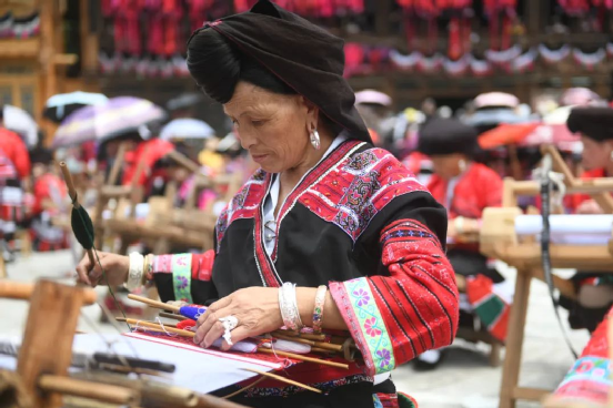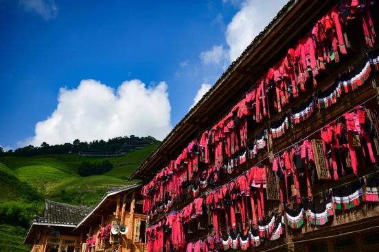 2014年,龍勝瑤族服飾(紅瑤服飾)以其精湛的手工藝和文化底蘊入選國家級非物質(zhì)文化遺產(chǎn)代表性項目名錄擴展項目名錄。如今的“曬衣節(jié)”已不僅是紅瑤的傳統(tǒng)佳節(jié),“農(nóng)歷六月六,廣西龍脊看紅衣”等曬衣節(jié)系列活動已成為桂林山水游的一張名片,讓各地游客充分感受多姿多彩的民族風情。紅瑤同胞們用自己獨特的方式,為中國共產(chǎn)黨成立100周年獻上自己的祝福。