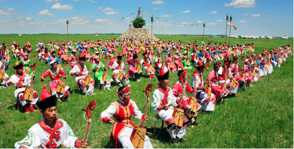 在郭爾羅斯,早期的馬頭琴主要擔(dān)當(dāng)史詩(shī)說(shuō)唱及民歌的伴奏,一首民歌就是一支馬頭琴曲,人聲起便可琴聲合, 尤其是同蒙古民族的“烏爾圖道”(即長(zhǎng)調(diào)民歌)相結(jié)合,更具草原文化的韻味。